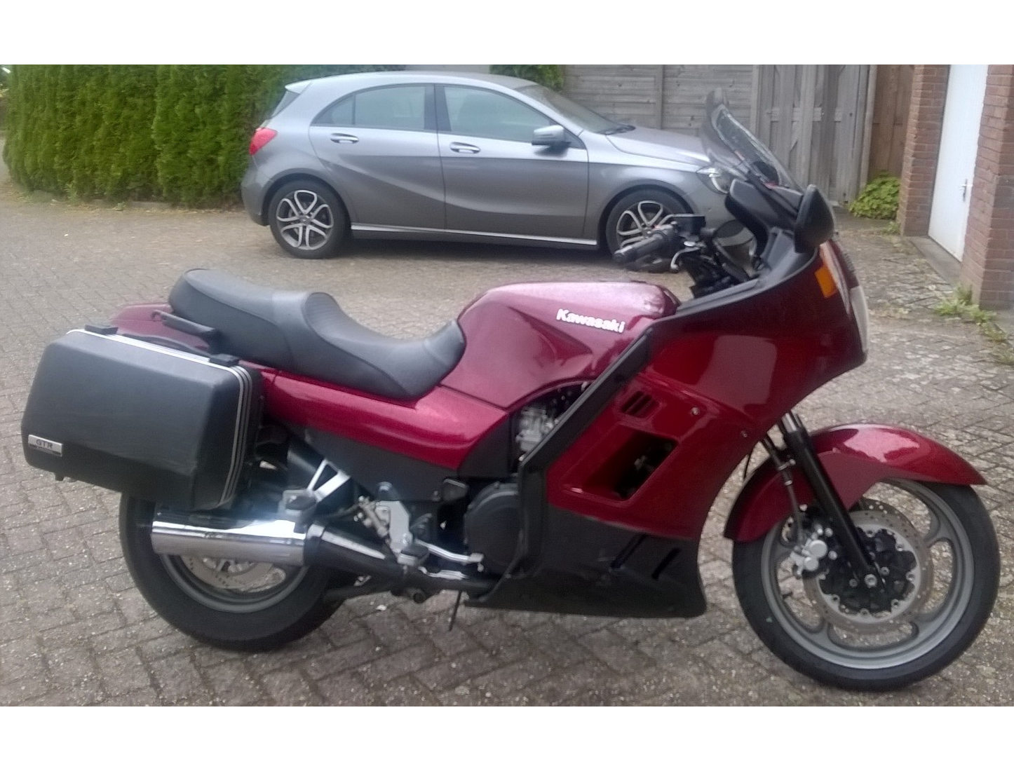 Zware toermotor met groot windscherm en 2 zijkoffers. Ook een topkoffer(niet op foto). Hier passen ook helmen in ! Ram mount om eigen navigatie te monteren met 12v aansluiting. Ideaal voor weekendjeweg :-)
